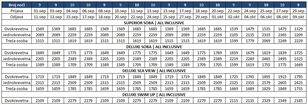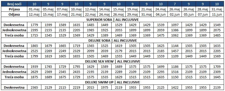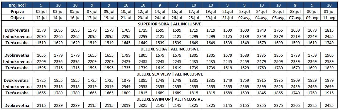 • boravišnu taksu za hotel 1 evro po danu / po osobi, plaća se na recepciji hotela
