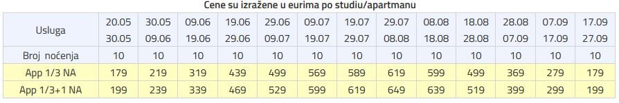 CENA OBUHVATA PREVOZ I SMEŠTAJ – PAKET ARANŽMAN PO OSOBI, LETO 2021.