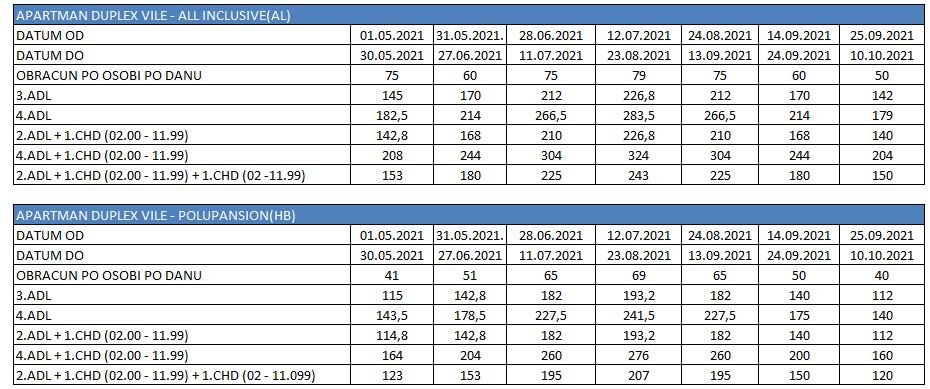Prvo dete 2-12 godina na osnovnom ležaju i drugo dete 2-12 godina na pomoćnom ležaju – po 30%