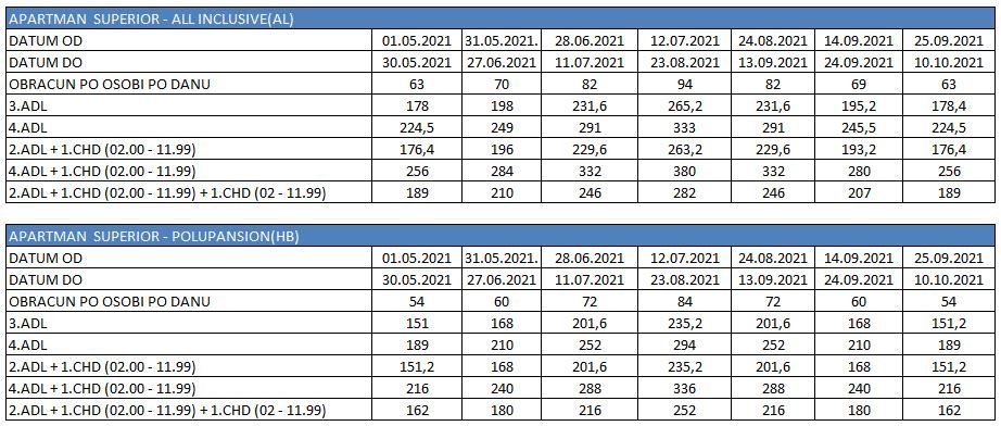 Jedno dete do 2 godina – odrasla osoba plaća doplatu za jednokrevetnu sobu