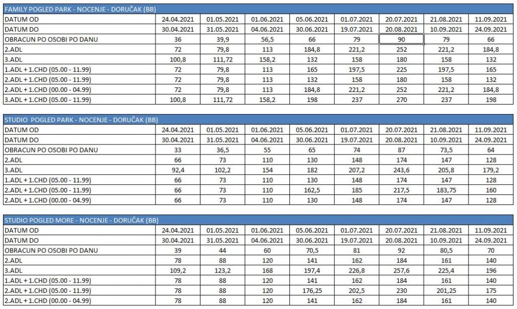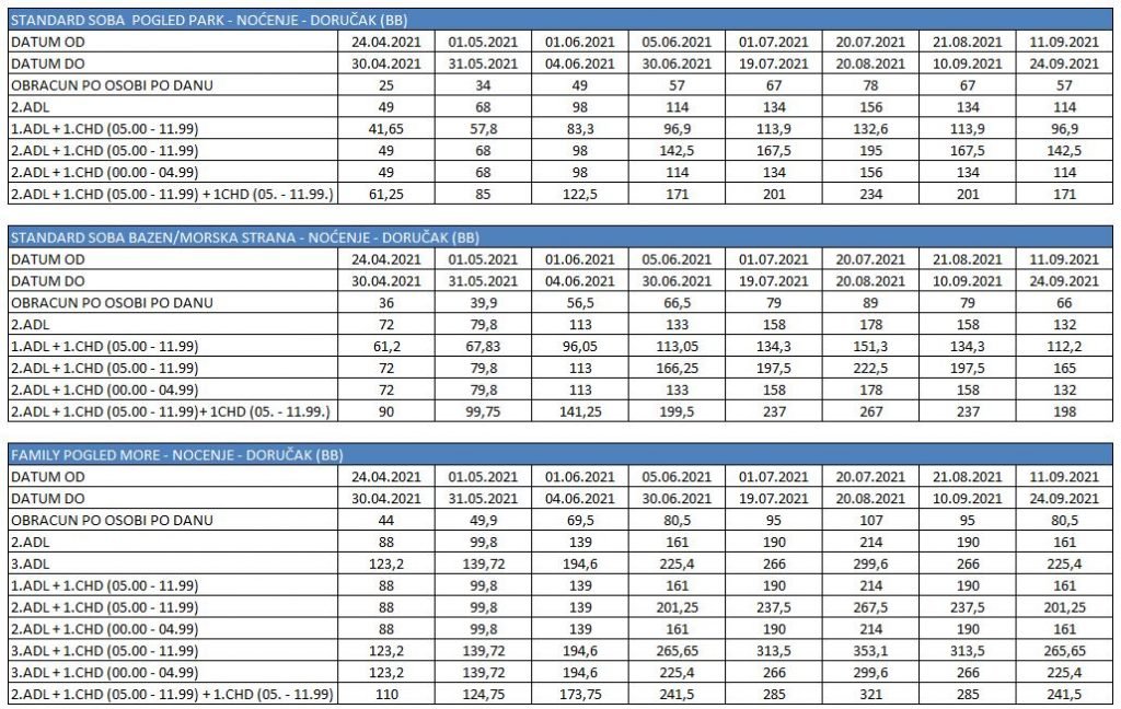Odbitak za uslugu noćenje/ doručak – 3,00 eur/osoba/dan