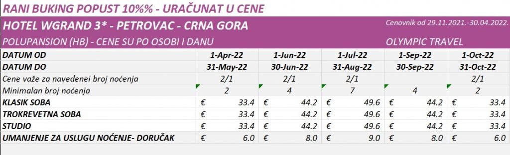 Uz ovaj program važe opšti uslovi putovanja organizatora OTP broj 222/2021.