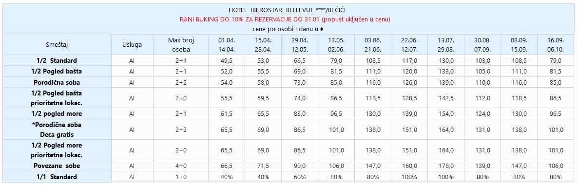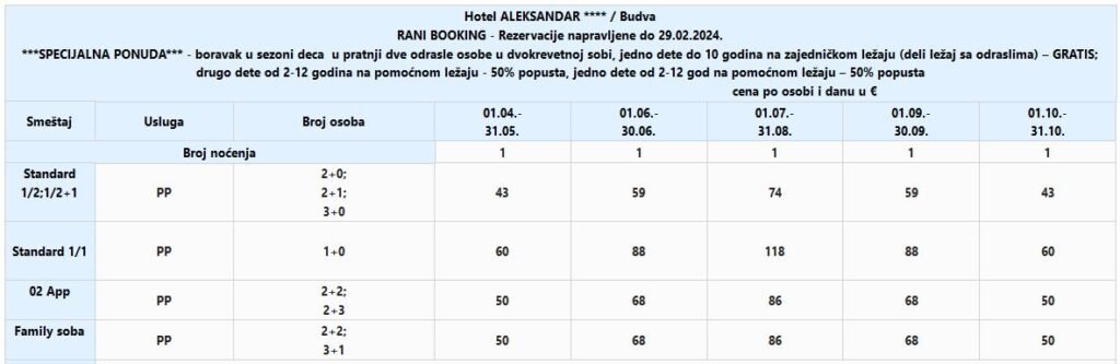 Dete od 3 do 7 godina u pratnji jedne odrasle osobe – besplatno, a odrasla osoba plaća doplatu za jednokrevetnu sobu ( standard soba, superior soba)
