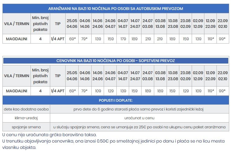 Boravak na bazi broja noćenja prema cenovniku Grčka leto 2021. u izabranom smeštaju na bazi odabrane usluge.