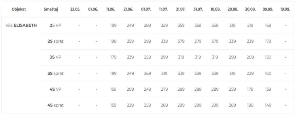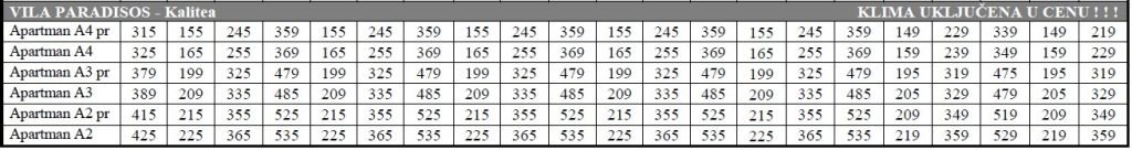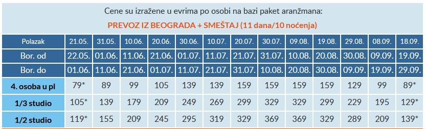 Cenovnik 15 noći