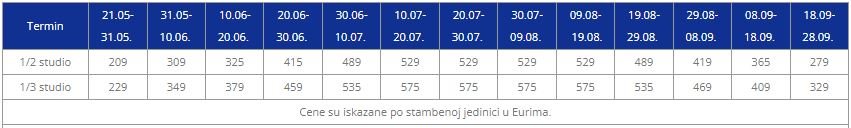 Cena su izražene na bazi 10 noći za sopstveni prevoz