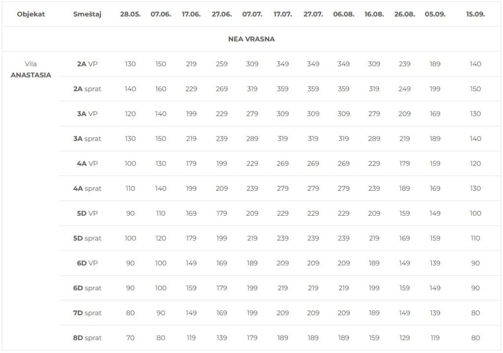 ANASTASIA, NEA VRASNA – CENOVNIK LETO 2024.