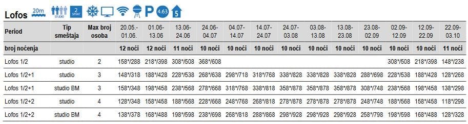 LOFOS, KALAMITSI – CENOVNIK LETO 2023.