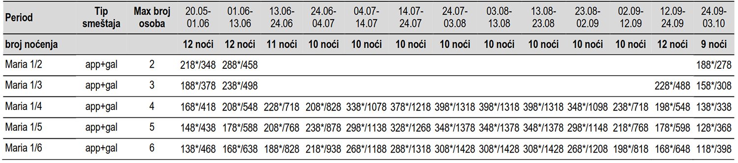 MARIA, KALAMITSI – CENOVNIK LETO 2024.