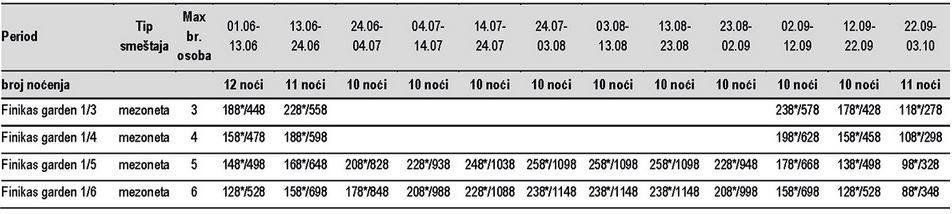 Cena sa „zvezdicom“ * predstavlja cenu paket aranžmana (smeštaj+prevoz) po osobi.