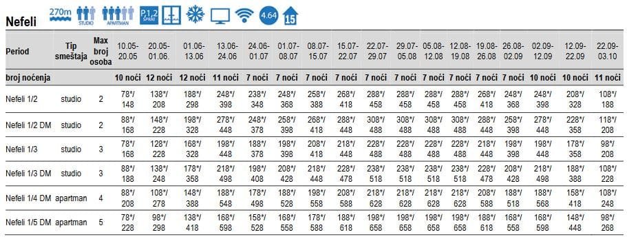 NEFELI, NEOS MARMARAS – CENOVNIK LETO 2023.