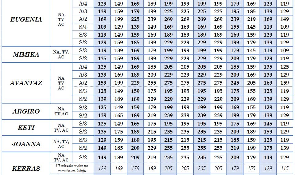 Cena objekta pretežno zavisi od kvaliteta i lokacije. Putnici ulaze u očišćenu smeštajnu jedinicu (posle 15.00 h), ali su u obavezi da tokom svog boravka sami vode računa o higijeni iste. Smeštajne jedinice nisu opremljene peškirima i sredstvima za higijenu. Pomoćni ležaj u svim objektima u Grčkoj je na sklapanje, drvene ili metalne konstrukcije ili fotelje na rasklapanje, manjih dimenzija, što može bitno pogoršati uslove smeštaja. Svi objekti u Grčkoj koriste sistem solarnih bojlera za zagrevanje vode, što podrazumeva nešto nižu temperaturu tople vode, u odnosu na uobičajenu, kao i manji pritisak tople vode u određenim periodima dana, a u odnosu na kapacitet objekta. Minimalni broj punoplatežnih osoba je određen brojem osnovnih ležaja u smeštajnoj jedinici. U slučaju promene broja korisnika u okviru ugovorene smeštajne jedinice (odustanka nekog od putnika sa ugovora), obavezna je korekcija strukture smeštajne jedinice, i shodno tome, i cene aranžmana po važećem cenovniku. Autobus po dolasku, kao i u odlasku staje što je moguće bliže smeštajnom objektu. Obaveza organizatora nije prenos prtljaga od autobusa do smeštajnog objekta. Izvršilac usluga i pomoći turistima u mestu odredišta je ino partner (TRADITIONAL TOURS- Pefki, Evia). Broj telefona predstavnika na lokaciji će biti dostupan putnicima u momentu izdavanja vaučera, a najkasnije pre otpočinjanja ugovorenog putovanja. NAPOMENA: Obaveštavaju se putnici, s` obzirom na postojeću situaciju, uzrokovanu kretanjem velikog broja migranata i vanrednim nepredvidivim okolnostima na pojedinim graničnim prelazima, granični prelaz ili pak zemlja tranzita može biti promenjen, od onoga što je navedeno u programu putovanja. U zavisnosti od trenutne situacije, i radi potpune i bezbedne realizacije programa, sa tim u vezi molimo da putnici imaju razumevanja i za eventualna kašnjenja, na koja organizator putovanja u datoj situaciji, nije u mogućnosti da utiče. FIRST i LAST MINUTE ponude – Organizator putovanja koristi pravo da putem FIRST ILI LAST MINUTE ponude prodaje svoje slobodne kapacitete po cenama koje su niže ili drugačije od onih u cenovniku koji je važio prilikom rezervacije. Putnici koji su uplatili aranžman po cenama objavljenim u cenovniku u momentu rezervacije, ne ostvaruju pravo za nadoknadu na ime razlike u ceni. VAŽNO: Upozoravaju se putnici da zbog poštovanja satnica predviđenih programom putovanja, ne postoji mogućnost zadržavanja autobusa na graničnom prelazu radi regulisanja povraćaja sredstava po osnovu TAX FREE, pa Vas molimo da to imate u vidu. Organizator putovanja može zahtevati povećanje ugovorene cene samo ako je posle zaključenja ugovora došlo do promena u kursu razmene valuta ili do promene goriva, putarina, parkinga, tunela, trajekta, vinjeta-putna taksa koje utiču na cenu putovanja. Preporučuje se putnicima, da se o uslovima ulaska u zemlje EU (potrebna novčana sredstva za boravak, međunarodno putno osiguranje, potvrde o smeštaju …) informišu na sajtu Delegacije EU u Srbiji ili u ambasadi ili konzulatu zemlje u koju putuju. Agencija ne snosi odgovornost u slučaju da pogranične vlasti onemoguće putniku ulaz na teritoriju EU. U slučaju štrajka, blokade na putevima i drugih nepredviđenih okolnosti na koje organizator putovanja ne može uticati, organizator zadržava pravo promene rute putovanja kao i izmene redosleda sadržaja u programu. Samo opisi usluga sadržani u programima putovanja su merodavni a ne i opis usluga u katalozima – publikacijama ili na web sajtovima neposrednih pružalaca usluga kao npr. hotela i drugo koji nisu obuhvaćeni datim programom.