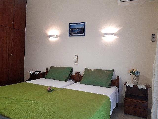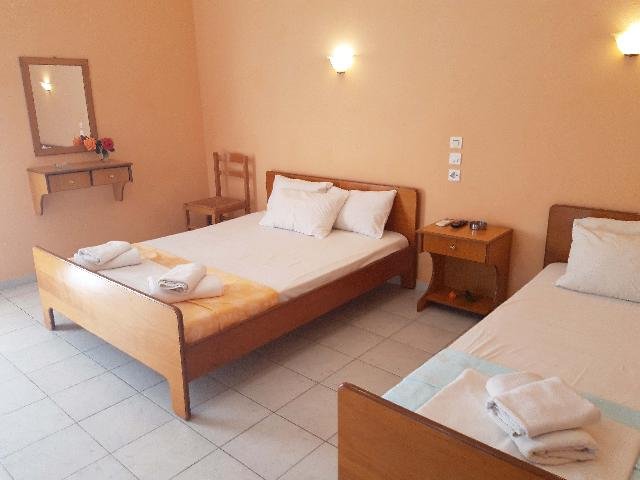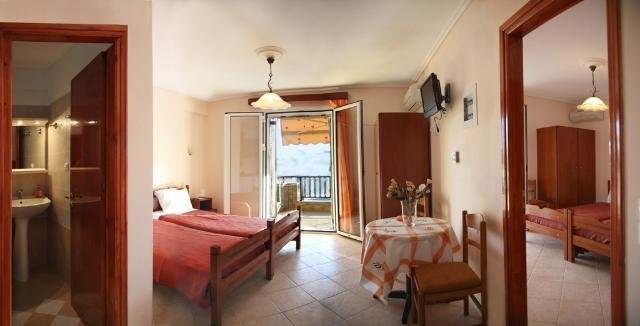 Smeštaj: Kuća poseduje studija za za 2 i 3 osobe (strukture dva ili tri osnovna kreveta u zavisnosti od tipa studija), opremljene TWC-om manje kvadrature, TV-om, klima uređajem (uključen u cenu), mini čajnom kuhinjom, balkonom ili terasom. U sklopu kuće postoji wifi (slabog protoka), dostupan u periodu jun-septembar.