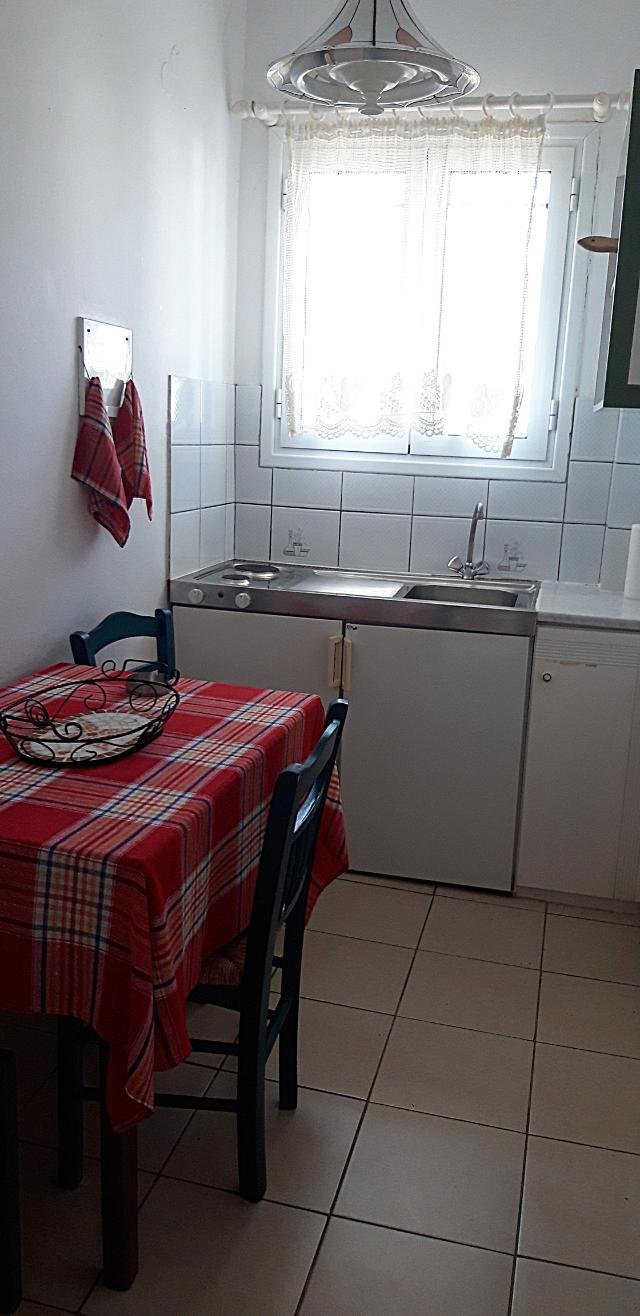 Smeštaj: Kuća poseduje studija za 2, 3 ili 4 osobe osobe (strukture francuski ležaj manjih dimenzija sa jednim ili dva osnovna ležaja u zavisnosti od tipa studija) i apartman za 2 do 5 osoba u potkrovlju, opremljene TWC-om, TV-om, klima uređajem (uključen u cenu), mini čajnom kuhinjom, balkonom ili terasom. U sklopu kuće postoji wifi (slabog protoka), dostupan u periodu jun-septembar.