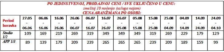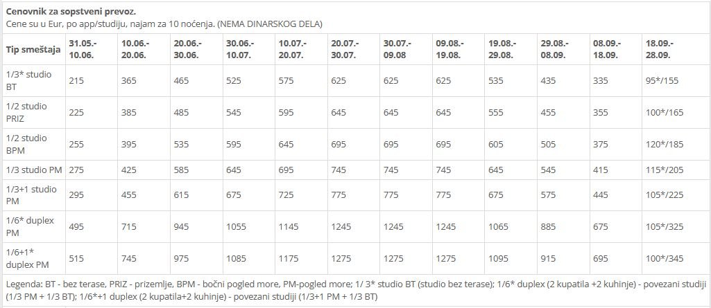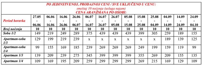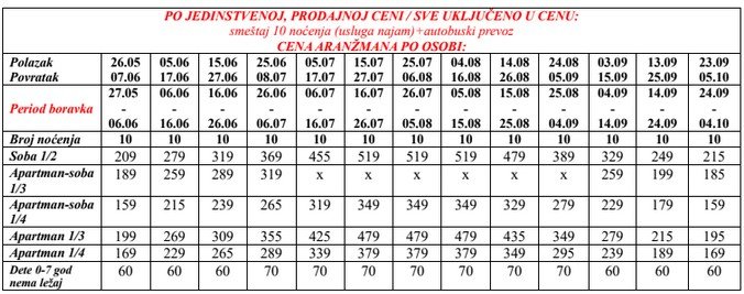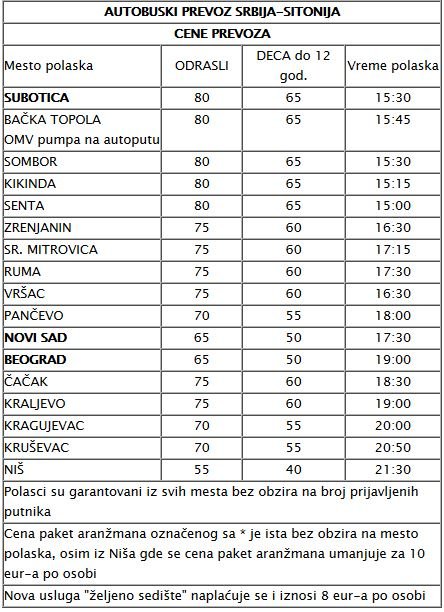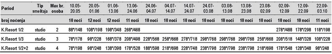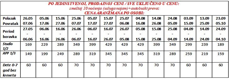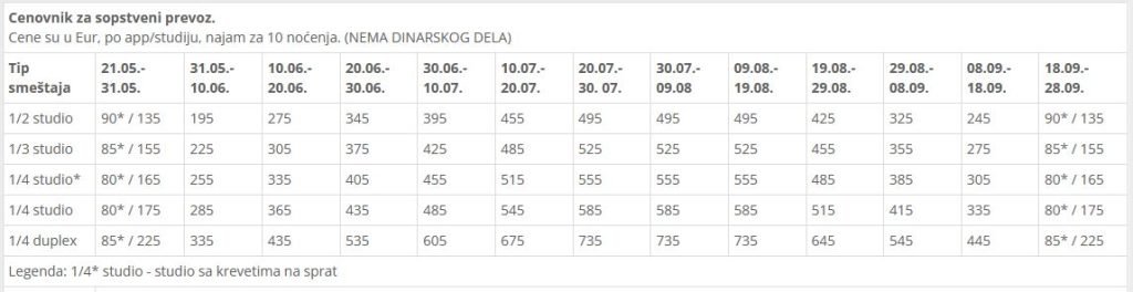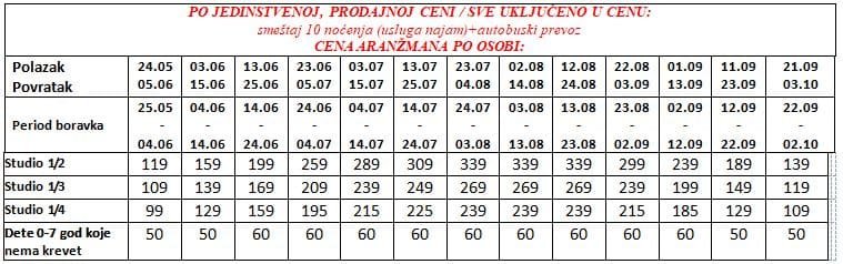 Cena sa “zvezdicom” * predstavlja cenu paket aranžmana (smeštaj+prevoz) po osobi.