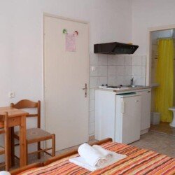 Smeštaj Kuća poseduje studija za 2, 3 ili 4 osobe i apartman za 4 ili 5 osoba, opremljene TWC-om, TV-om, klima uređajem (uz doplatu na licu mesta), mini čajnom kuhinjom, manjim balkonom ili manjom terasom. U sklopu kuće postoji wifi (slabog protoka), dostupan u period jun-septembar.