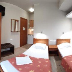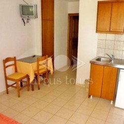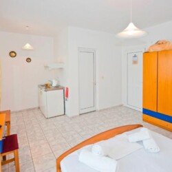 Smeštaj: Kompleks poseduje studija za 2 osobe i studija za 2 osobe – tip A, opremljena TWC-om, TV-om, klima uređajem (uz doplatu na licu mesta), mini čajnom kuhinjom, balkonom ili terasom. Studija tip A imaju ogradjenim prostor zidom u funciji terase i terasu koja je fizički odvojena od studija. U sklopu kuće postoji lift kao i wifi (slabog protoka), dostupan u periodu jun-septembar.