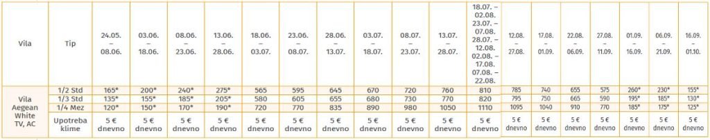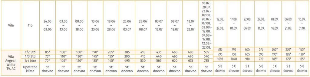AEGEAN WHITE, LEPTOKARIJA – CENOVNIK LETO 2023.