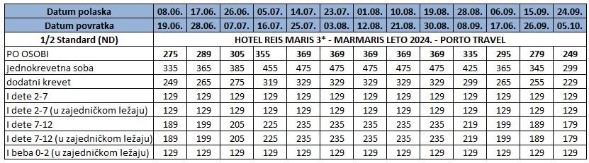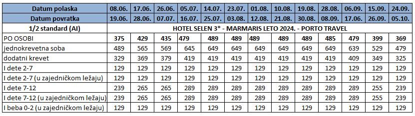 Dete od 7 do 12 godina u pratnji dve punoplatežne osobe plaća iznos koji je naveden u tabeli programa putovanja ima mesto u pomoćnom ležaju, uslugu u hotelu kao punoplatežna osoba i mesto u autobusu.