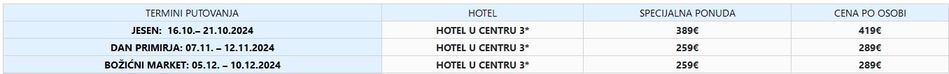 • putnici koji koriste sopstveni prevoz imaju popust 60 €(NA UPIT),