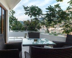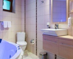 Opis smeštajnih jedinica : LUX apartmani površine 70 metara kvadratnih sa bračnom i spavaćom sobom, dnevnim boravkom sa komfornom garniturom, mini kuhinjom, kupatilom sa jakuzzi kadom, klimom, telefonskom linijom, minibarom, sefom, televizorom, internetom i terasom sa pogledom na more.