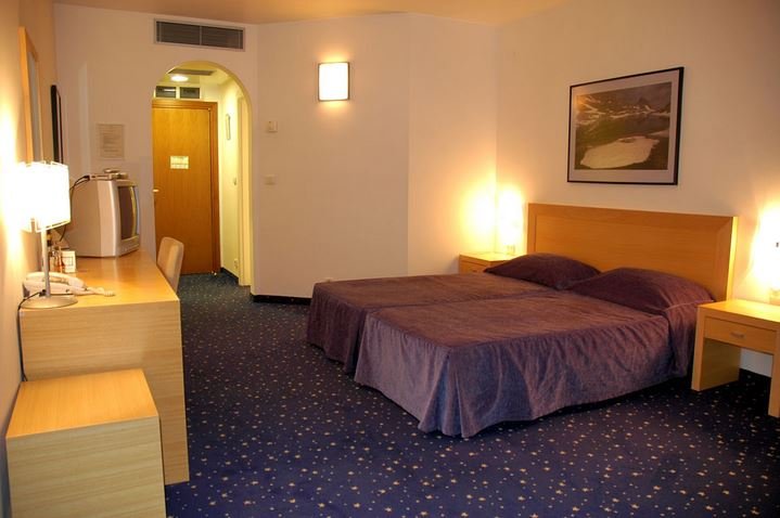 Smeštaj : Udobne klimatizovane sobe opremljene italijanskim nameštajem, kupatilom sa fenom, kablovskom TV, direktnom telefonskom linijom, internet vezom, mini barom i sefom pružaju gostima mogućnost udobnog i kvalitetnog odmora.
