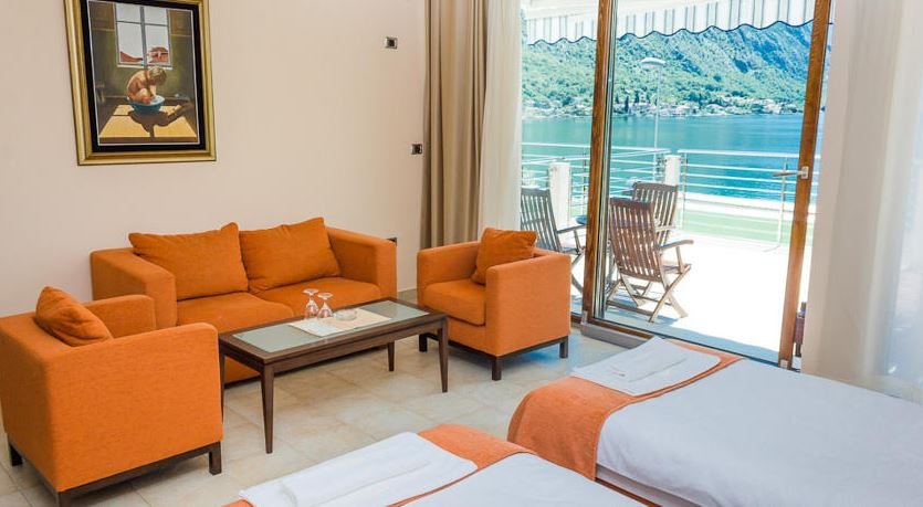 Lokacija : Nalazi na samoj obali mora, u malom i mirnom ribarskom mestu Orahovac poznatom po najlepšim plažama u zalivu,a na udaljenosti od svega nekoliko kilometara od Starog Grada Kotora.
