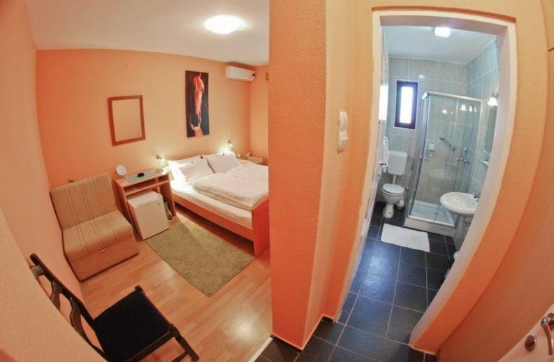 Smeštaj : Sve sobe imaju TV, klima uređaj, kupatilo,terasu sa pogledom na more,mogućnost dodatnog kreveta za bebe.
