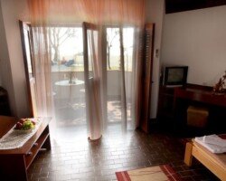 Nudističko naselje Ada Bojana smeštaj :Tipa A : Jednospratne vile paviljonskog tipa nanizane su naspram zgrade restorana, južno i jugozapano prema nudističkoj plaži i zapadno prema učću Bojane u more. Sobe u vilama su dvokrevetne ili trokrevetne, sa kupatilom i terasom i raspolažu sa klimom, televizorom i mini frižiderom.