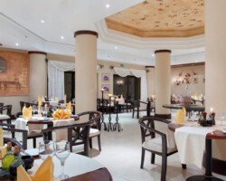 Doručak se služi od 06:30 do 11:00, kasni doručak od 11:00 do 13:00, ručak od 13:00 do 15:00, popodnevna užina od 13:00 do 17:00, sladoled od 14:00 do 16:00, večera od 18:30 do 22:30, kasna večera od 22:30 do 24:00. Za decu je dostupan dečiji meni.