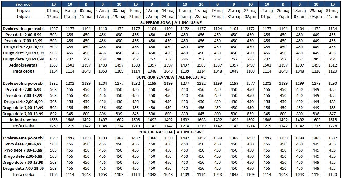PALM ROYALE, SOMA BAY – CENOVNIK MAJ 2024.
