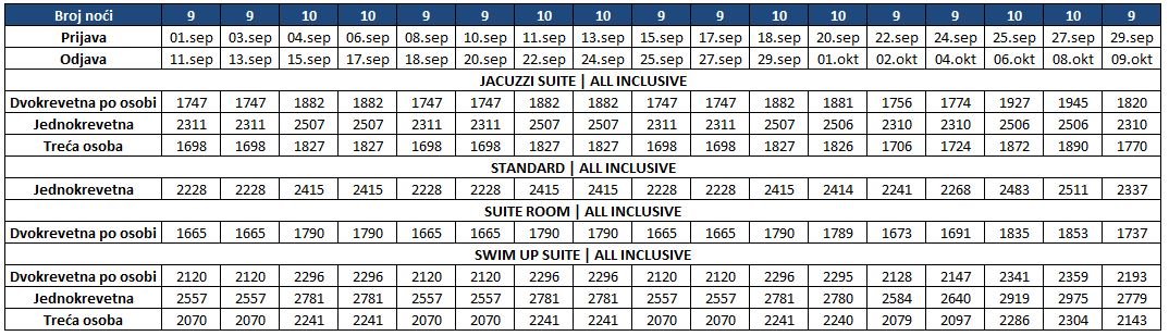 CENA U TABELI OBUHVATA PAKET ARANŽMAN PO OSOBI