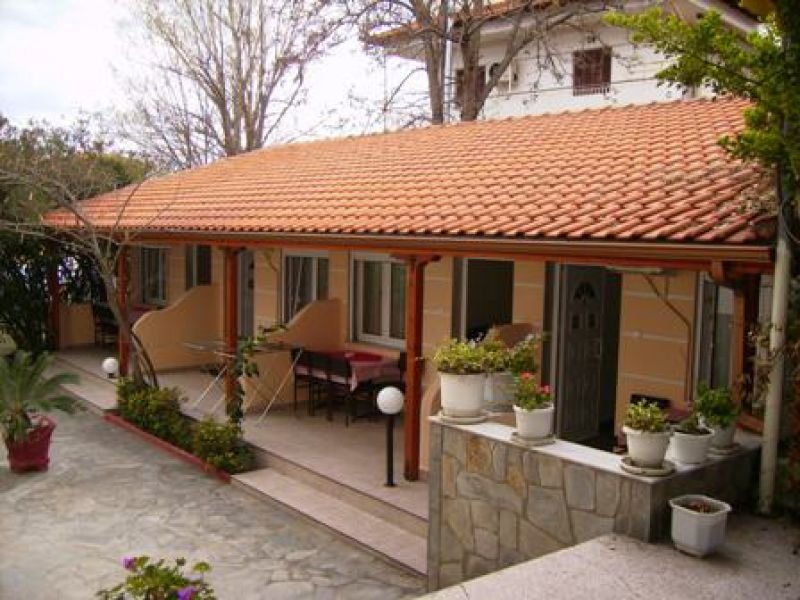 Opis: Poseduje privatan parking i kafeteriju u okviru kuće. Okružena je lepim dvorištem, sa bujnom vegetacijom. U našoj ponudi imamo dvokrevetna i trokrevetna studija, koja se nalaze u prizemlju i na prvom spratu. Svaka od smeštajnih jedinica ima opremljen kuhinjski deo, kupatilo/wc, terasu, TV, WiFi internet i klima uređaj (uz doplatu na licu mesta, od 6€ dnevno).