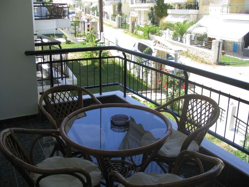 Opis: Vrlo kvalitetan smeštaj. Apartmani se sastoje od spavaće sobe u kojoj su dva spojena ležaja, dnevno-spavaće sobe sa dva odvojena ležaja u kojoj je kuhinja opremljena osnovnim potrepštinama. Iz obe sobe izlazi se na veliku terasu opremljenu tendom i sa ratan garniturom za sedenje. Svi apartmani poseduju klima uredjaje, TV. Posteljina i peškiri, su sastavni deo svake smeštajne jedinice i menjaju se jednom u toku boravka gostiju.