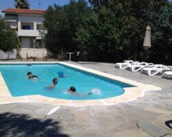 Opis i lokacija: Dvospratna kuća sa niskim prizemljem okružena zelenilom, nalazi se na glavnom putu, na oko 400m od centra Haniotija. U sklopu kuće nalazi se bar i bazen.Udaljenost od mora i plaže: na oko 500 m od mora i plaže.Ležaljke i suncobrani: na bazenu.