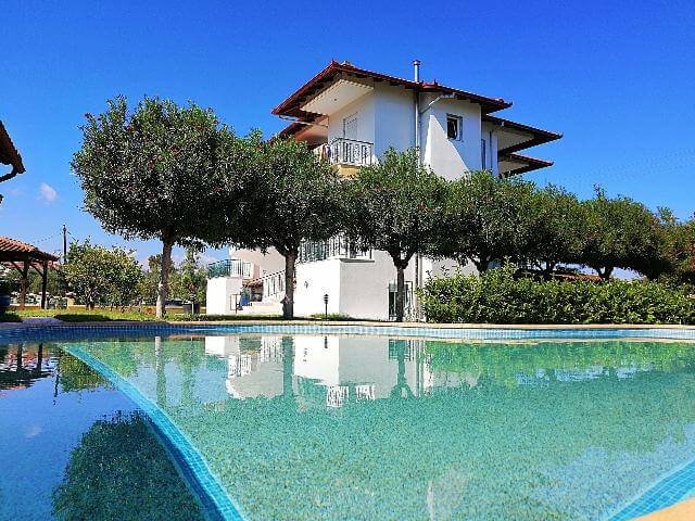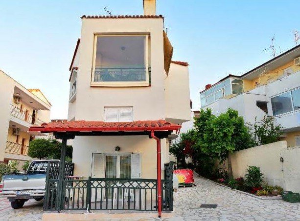 Opis i lokacija: Dvospratna kuća sa niskim prizemljem okružena zelenilom, nalazi se na glavnom putu, na oko 400m od centra Haniotija. U sklopu kuće nalazi se bar i bazen.Udaljenost od mora i plaže: na oko 500 m od mora i plaže.Ležaljke i suncobrani: na bazenu.