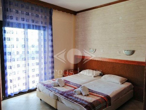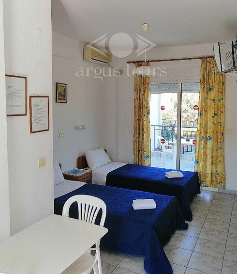 Smeštaj: Hotel poseduje studija za 2,3 ili 4 osobe, opremljene sa TWC-om(skromnijeg kvaliteta), TV-om, mini čajnom kuhinjom, klima uređajem, i prostorom u funkciji ulazne terase (važi za studije i u prizemlju, i na spratu). U sklopu hotela nalazi se recepcija, bar i restoran. Studiji za 3 ili 4 osobe su strukture francuski ležaj manjih dimenzija sa jednim ili dva osnovna ležaja, a u zavisnosti od tipa studija.Ležaljke i suncobrani: ne Wifi: u zajedničkim prostorijama hotela – bez doplate.Parking: Sopstveni parking nema.Usluga: najam.