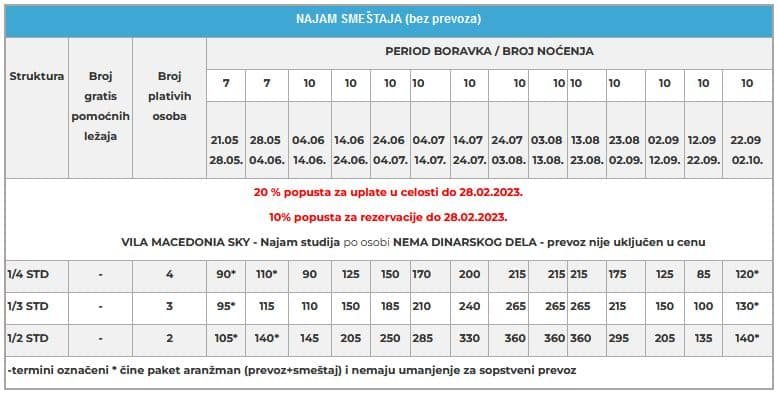 MACEDONIA SKY 2, HANIOTI – CENOVNIK LETO 2023.