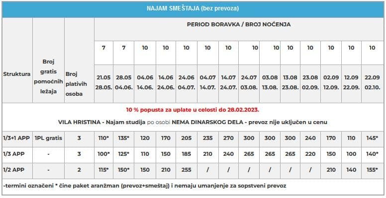 HRISTINA, HANIOTI – CENOVNIK LETO 2023.