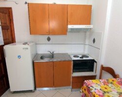 Opis: U našoj ponudi su komforni, prostrani apartmani koji su namenjeni za smeštaj od 2 do 4 osoba. Svaki apartman ima odvojenu spavaću sobu sa francuskim ležajem, kupatilo/wc, terasu okrenutu ka moru, kompletno opremljen kuhinjski deo sa trpezarijskim delom u kojem se nalaze još dva ležaja, TV, WiFi internet i klima uređaj (uz doplatu na licu mesta, od 5€ dnevno). Ova vila je preporuka za sve one koji žele mirno okruženje.