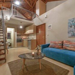 Apartman br. 1 – Prvi nivo sadrži veliki dnevni boravak sa kuhinjom, koja je potpuno opremljena, trpezarijski sto za ručavanje i ugaona garnitura na kojoj se mogu smestiti dve osobe. Takodje, postoji i odvojena jednokrevetna spavaća soba. Na istom nivou se nalazi i kupatilo. Na galeriju se ide stepenicama gde je smešten veliki francuski krevet. Moguć je smeštaj pet odraslih osoba ili pet odraslih osoba + dete do 2 godine.