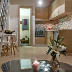 Apartman br. 2 – Prvi nivo sadrži veliki dnevni boravak sa kuhinjom, koja je potpuno opremljena, trpezarijski sto za ručavanje i ugaona garnitura na kojoj se mogu smestiti dve osobe. Na istom nivou se nalazi i kupatilo. Na galeriju se ide stepenicama gde je smešten veliki francuski krevet. Moguć je smeštaj četiri odrasle osobe ili cetiri odrasle osobe + dete do 2 godine.