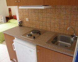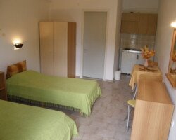 *Studio 02 i 03: sobe se sastoje od dva ili tri ležaja, kuhinjskog dela (frižider, ugradni šporet sa dve ringle, aspirator, posuđe za odgovarajući broja osoba), klima uz doplatu, kupatilo – tuš/wc sa peškirima. Balkon sa garniturom za sedenje.