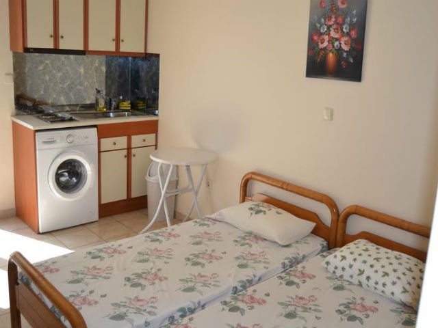 Vila Nikos – Lokacija: Nalazi se u mirnom delu centra Skale u neposrednoj blizini glavne ulice i trga. Vila je oko 350 m udaljena od plaže. Studio 02: sobe se sastoje od dva odvojena kreveta, kuhinjski deo (frižider, mašina za pranje veša, ugradni šporet sa dve ringle, aspirator, posuđe za odgovarajući broja osoba),Wi-Fi, klima (uključena u ceni), TV, kupatilo – tuš/wc sa peškirima. Terasa ili balkon sa garniturom za sedenje. App 02: Sastoji se iz sobe sa dva odvojena kreveta, Wi-Fi, klima (uključena u ceni), TV, kupatilo – tuš/wc sa peškirima. Terasa ili balkon sa garniturom za sedenje. Zasebni kuhinjski deo (frižider, mašina za pranje veša, ugradni šporet sa dve ringle, aspirator, posuđe za odgovarajući broja osoba),