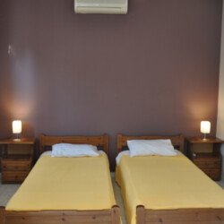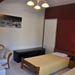 DVOKREVETNI STUDIJI: Dvokrevetni studiji se nalaze sa zadnje strane vile Temis u prizemnom delu kuće. Pogodnost ove lokacije studija je mir i tišina, kao i otvoreni terasni prostor koji pruža pogled na dvorište, koje je puno zelenila. Svaki studio poseduje ili dva standardna singl ležaja (spojena ili odvojena), ili francuski ležaj, noćni stočić, klima uređaj, lampe, TV, internet konekcija (ne odgovaramo za brzinu i protok signala). Svaki studio poseduje i kuhinjski deo sa rešoom sa dve ringle, sudoperom i aspiratorom, kao i komplet posuđe za dve osobe, kao i sto za ručavanje sa dve stolice. Kupatila su opremljena sa TUŠ kabinom. Ispred svakog studija se nalazi terasni prostor sa stolom i dve stolice.