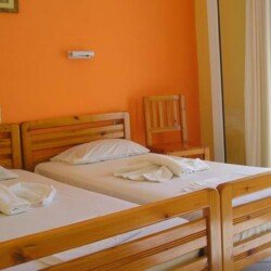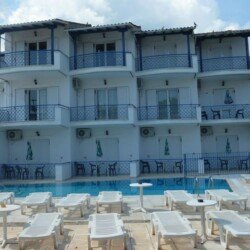 Opis: Objekat poseduje bazen I ležaljke oko bazena. U našoj ponudi su trokrevetni I četvorokrevetni apartmani, smešteni u prizemlju, na prvom I drugom spratu I svi imaju pogled na bazen, a svaki od njih poseduje kompletno opremljeni kuhinjski deo, kupatilo/wc, terasu, WiFi, klima uređaj (uz doplatu na licu mesta od 5e dnevno).