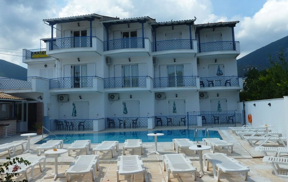 Opis: Objekat poseduje bazen I ležaljke oko bazena. U našoj ponudi su trokrevetni I četvorokrevetni apartmani, smešteni u prizemlju, na prvom I drugom spratu I svi imaju pogled na bazen, a svaki od njih poseduje kompletno opremljeni kuhinjski deo, kupatilo/wc, terasu, WiFi, klima uređaj (uz doplatu na licu mesta od 5e dnevno).