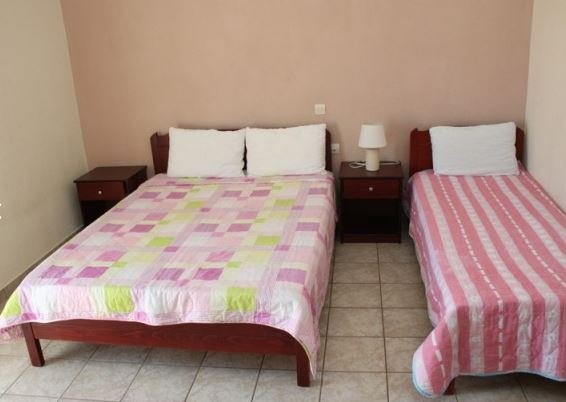 U ponudi vile Hariklia imamo dvokrevetne, trokrevetne i četvorokrevetne studije na prvom i drugom spratu vile. Svaki studio poseduje kompletno opremljenu kuhinju (frižider, mini električni šporet, posuđe), kupatilo, TV sa srpskim kanalima, Wi-Fi (slabog protoka), klima uređaj čije je korišćenje uračunato u cenu najma kao i prostrane terase.