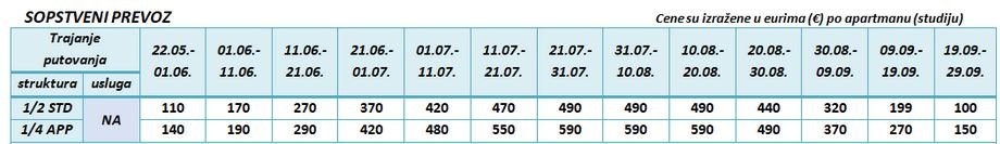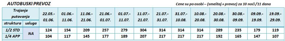 Cene sa uključenim autobuskim prevozom na bazi 10 noći