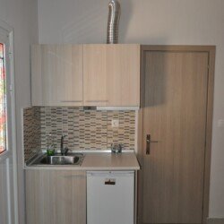 Dvokrevetni studio sadrži francuski ležaj i kuhinjski deo koji sadrži rešo sa dve ringle, frižider, sudoperu i elemente sa osnovnim kuhinjskim inventarom. Kupatilo ima tuš kadu. Terasa gleda na ulicu.